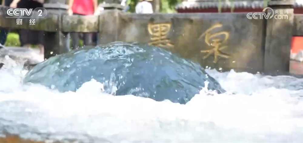 央视网消息:近期雨水充沛,位于山东济南章丘区的百脉泉迎来了丰水期,泉水群中的墨泉汹涌喷发、水势浩大,吸引了大量游客前来拍照打卡。