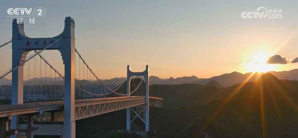金州大桥位于贵州兴义市,是贵州首座设有城市轨道交通空间与旅游观光通道的悬索桥。“桥旁赏落日、桥上瞰山河、桥下观飞瀑”的立体化旅游新模式,吸引了众多游客和市民前来观景游玩。