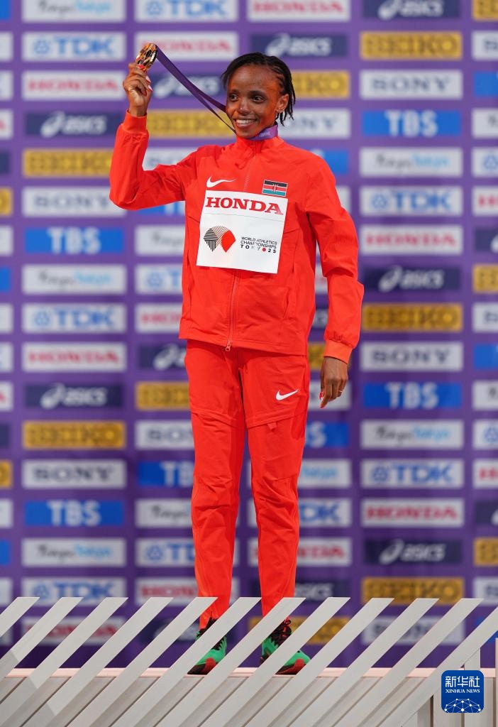 当日,2025年世界田径锦标赛女子10000米颁奖仪式在日本东京举行。