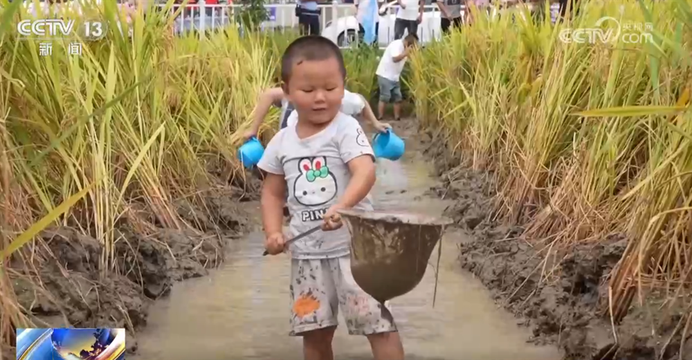摸鱼大赛气氛热烈,裁判一声令下,孩子们迅速冲入稻田,尽情体验捕鱼的乐趣。