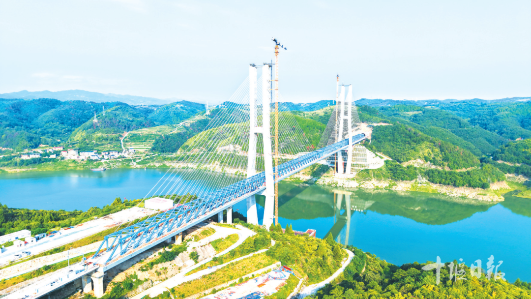 西十高铁汉江特大桥实现钢桁梁合龙。