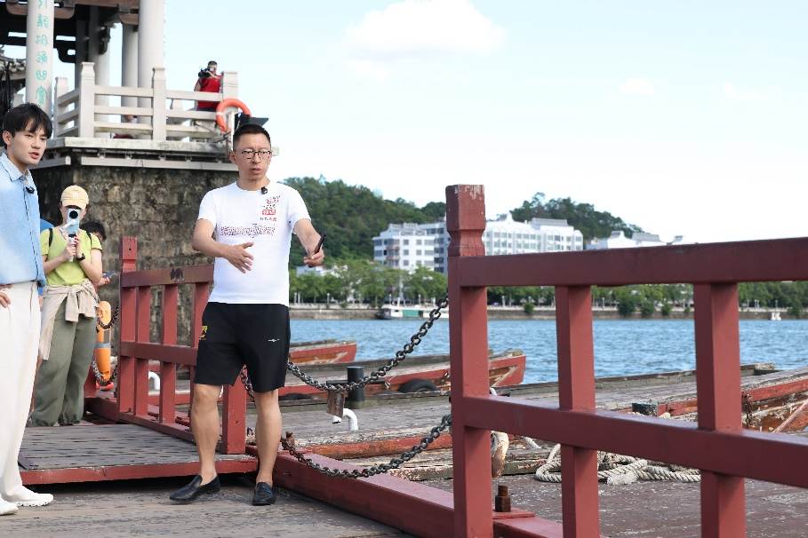 告别汕头后,张朝阳转赴潮州,探寻千年古城的文化底蕴。抵达“中国四大古桥之一” 的广济桥东门时,他被韩江江景与桥体建筑吸引,“这个江的宽度刚好,有水则灵,江风一吹很舒服。”