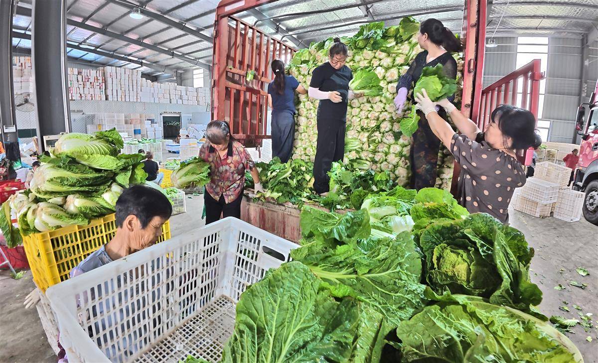 9 月 9 日,荆州市荆州区李埠镇旭东蔬菜产销专业合作社内一派繁忙景象,产销链条高效运转。眼下荆州区蔬菜产业正值产销旺季,全区蔬菜种植面积稳定、品类多元,依托成熟的产销对接体系,本地优质蔬菜持续保障省内外市场供应,成为区域农业发展的重要支撑。旭东蔬菜产销专业合作社加工车间里,工人娴熟分拣各类蔬菜,动作连贯有序;装车区中,满满一车新鲜蔬菜整装待发,即将运往外地,当前供应的蔬菜种类丰富,涵盖球白、苦瓜、瓠瓜及外地萝卜等,日均销量稳定在 7 到 10 万斤,产品主要销往北京、上海、福建等地区,不仅是荆州区蔬菜外销的重要窗口,更持续为各地市民餐桌输送新鲜 “荆味”。(湖北日报全媒记者 刘曙松 通讯员 肖敏 摄)