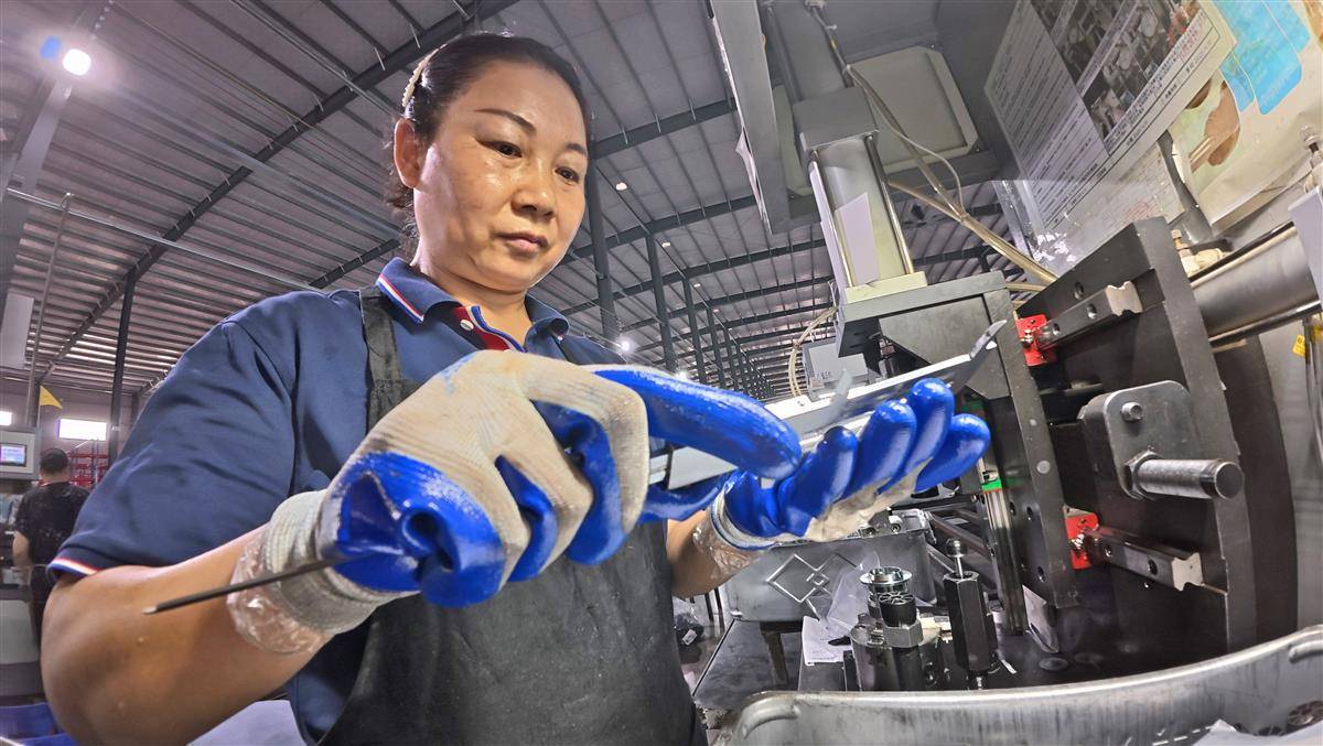 9月8日,荆州市顺辉汽车零部件有限公司汽车转向及悬挂零部件生产线上,工人们正忙碌的赶制订单产品。近期,该企业凭借技术创新与产业实力,成功入选省级制造业单项冠军企业。该企业年均新品超 300 项,自主研发技术填补国内空白,现拥发明专利 2 项、实用新型专利 15 项。据了解,荆州区精准培育市场主体提质增效,落实中小企业成长工程,推动企业“小升规、创新型、专精特新、制造业单项冠军”梯度发展,鼓励企业加强产品和技术研发,积极申报中小企业技术中心和工业设计及中心。1-6月新增6家创新型中小企业,总数达到98家;新增省级专精特新中小企业21家,总数达到58家,较去年提升52.6%;新增顺辉汽配、宇兴环保等省级制造业单项冠军企业7家,总数达17家,较去年提升70%。(湖北日报全媒记者 刘曙松 通讯员 肖敏 摄)