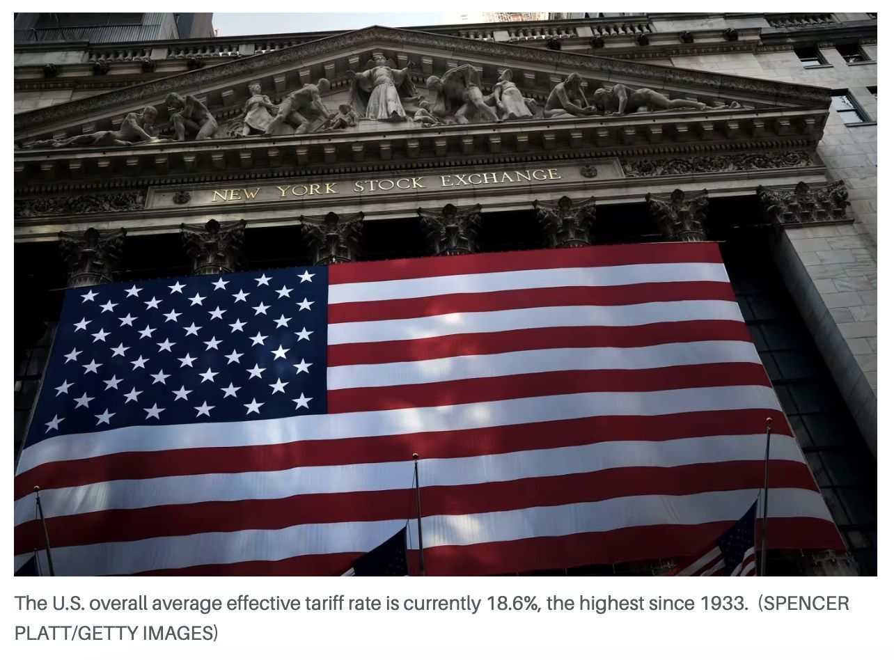 而特朗普开启第二个总统任期后发起的贸易战,导致美国的平均关税税率波动不定。今年4月,美国的平均关税税率一度攀升至28%,位居世界第二,仅略低于人均年收入不足600美元的苏丹,略高于人均年收入约3300美元的吉布提。