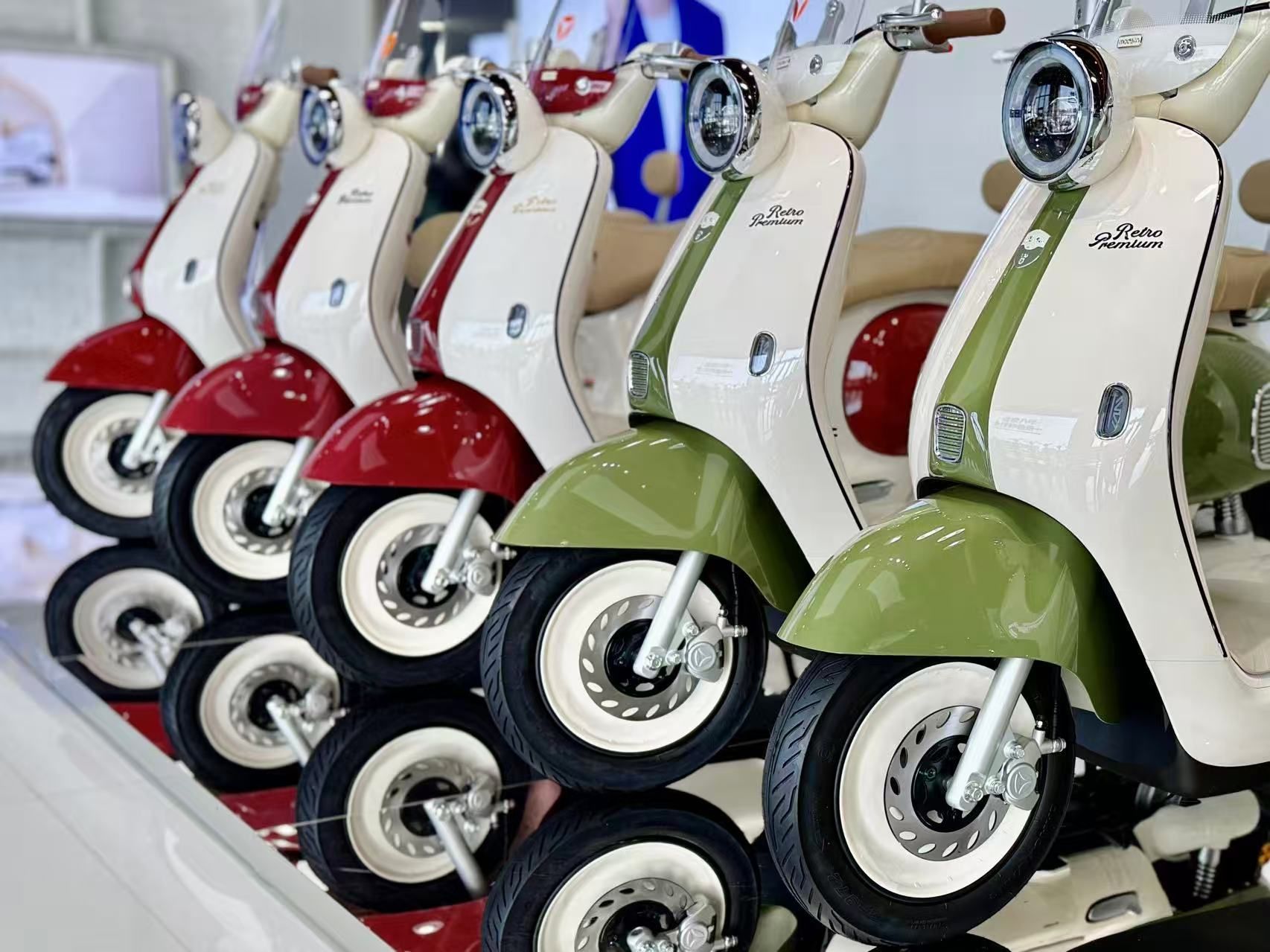 在雅迪展厅,款式多样、性能不同的多个系列产品叫人眼花缭乱,按需“花式”创研的成果具象化了——欧洲人身形高大、对速度要求高,性能强、有快充的跨骑式就很“搭”;东南亚国家城市通勤、家庭出行场景多,低速、加长座椅的踏板车就很“配”,好比是一辆两轮“SUV”。