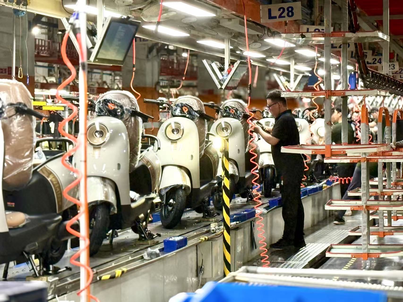 雅迪生产车间。记者潘笑天摄