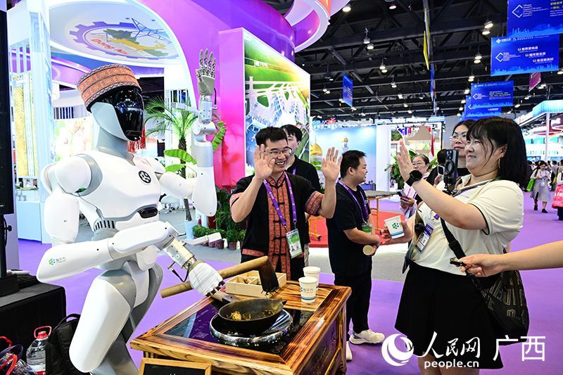人民网南宁9月18日电 (雷琦竣)AI一键换装;AI机器人打油茶;AI眼镜实时翻译;AI车辆自动驾驶……在第22届中国—东盟博览会(以下简称东博会)现场,AI元素无处不在。