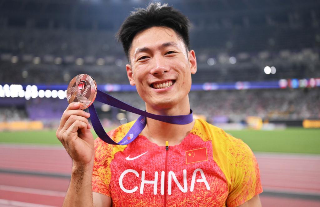 直到确定自己收获世锦赛铜牌,身披国旗的石雨豪脸上才洋溢出不再克制的笑容。不过在赛后的混合采访区,他表现得依然很平静。