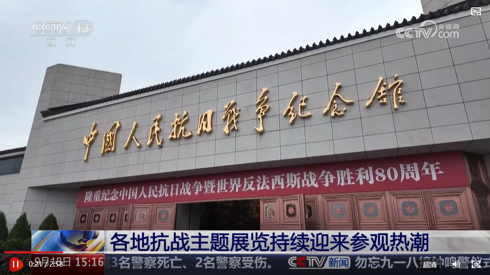 此外,中国共产党历史展览馆自8月15日陆续推出《中流砥柱——中国共产党抗日战争档案展》等4个专题展览,参观人数已经超过20万人次。辽宁“九·一八”历史博物馆、江苏刘老庄八十二烈士纪念馆、江西赣西抗战博物馆、上海淞沪抗战纪念馆等各地展馆都在今年推出文物互动、沉浸式展示等形式多样的抗战主题展览,吸引观众走进展馆感受革命先辈的奋斗与牺牲,传承弘扬伟大抗战精神。