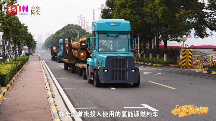 “你看那里!”顺着张家港港安全环保部副部长丁远眺手指的方向望去,一辆氢燃料牵引车正缓缓驶来。行驶过程中,车轮碾过干净的码头地面,竟无一丝尘土扬起。丁远眺介绍道:“这就是我们张家港在全国首批投入使用的氢燃料牵引车,它的碳排放是‘0’,‘吃’进去的是氢,排出来的是水。”