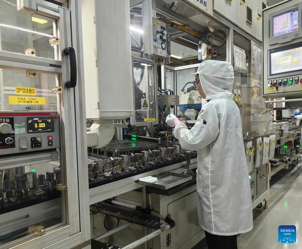 A staff member works at the production plant of the Marelli Powertrain (Hefei) Co., Ltd. in Hefei, east China's Anhui Province, Sept. 5, 2025. (Xinhua/Wang Haiyue)