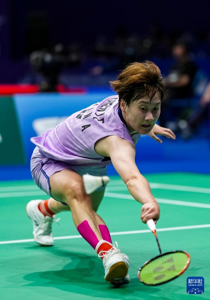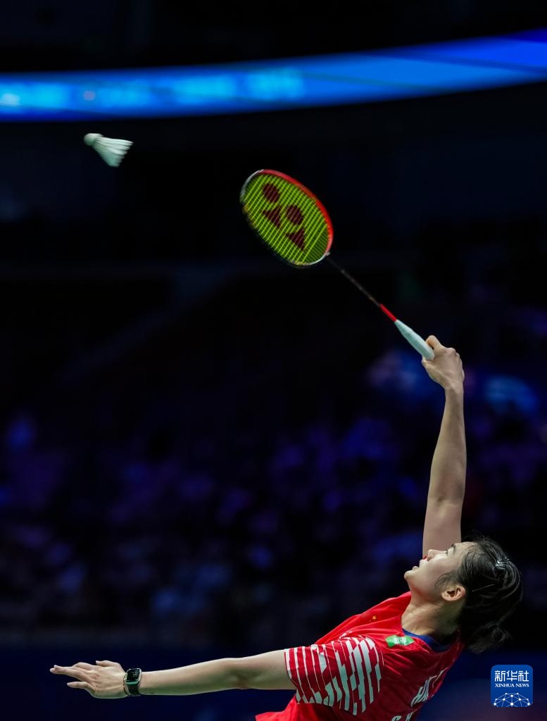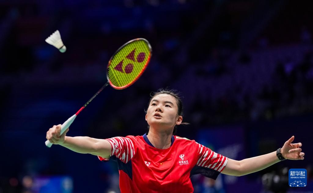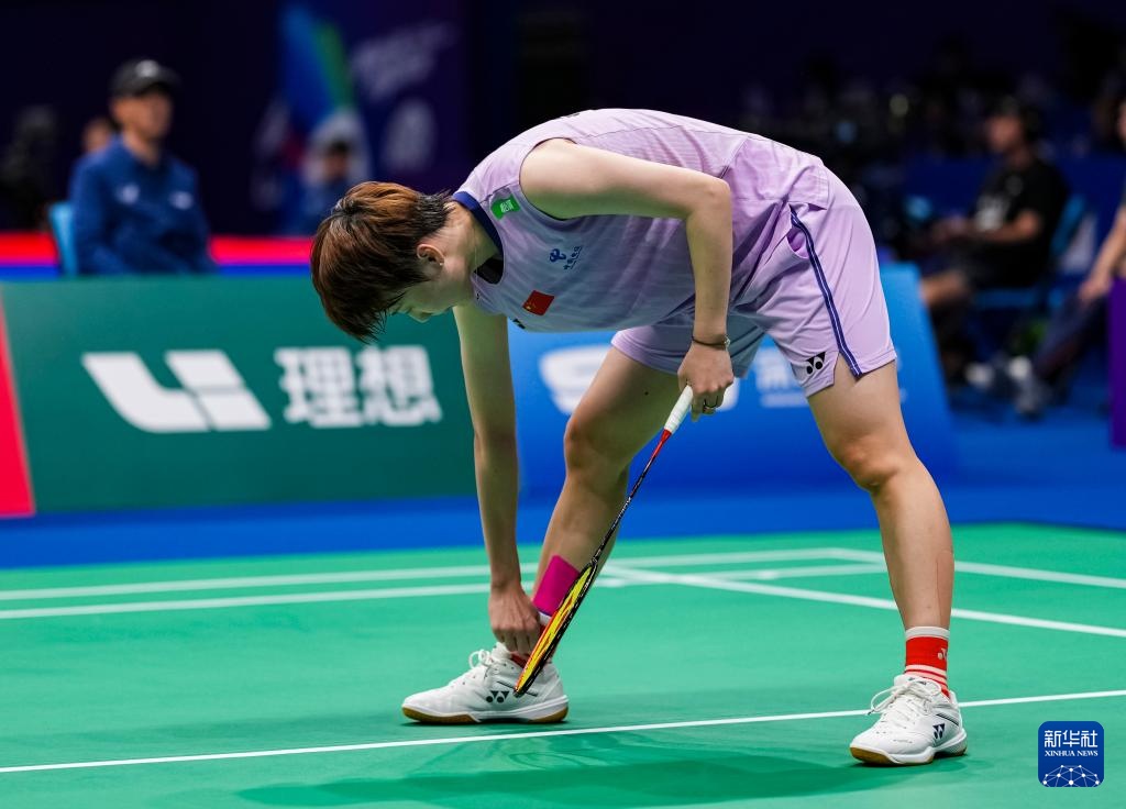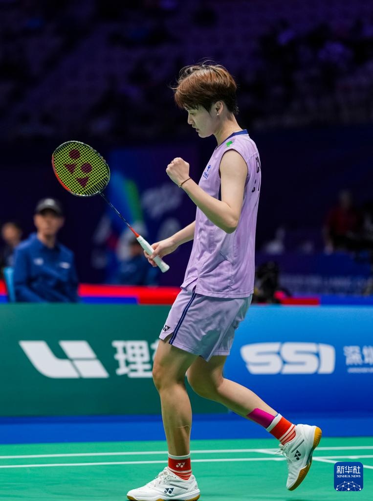 当日,在广东深圳举行的2025中国羽毛球大师赛女子单打四分之一决赛中,中国选手韩悦2比1战胜队友陈雨菲,晋级半决赛。