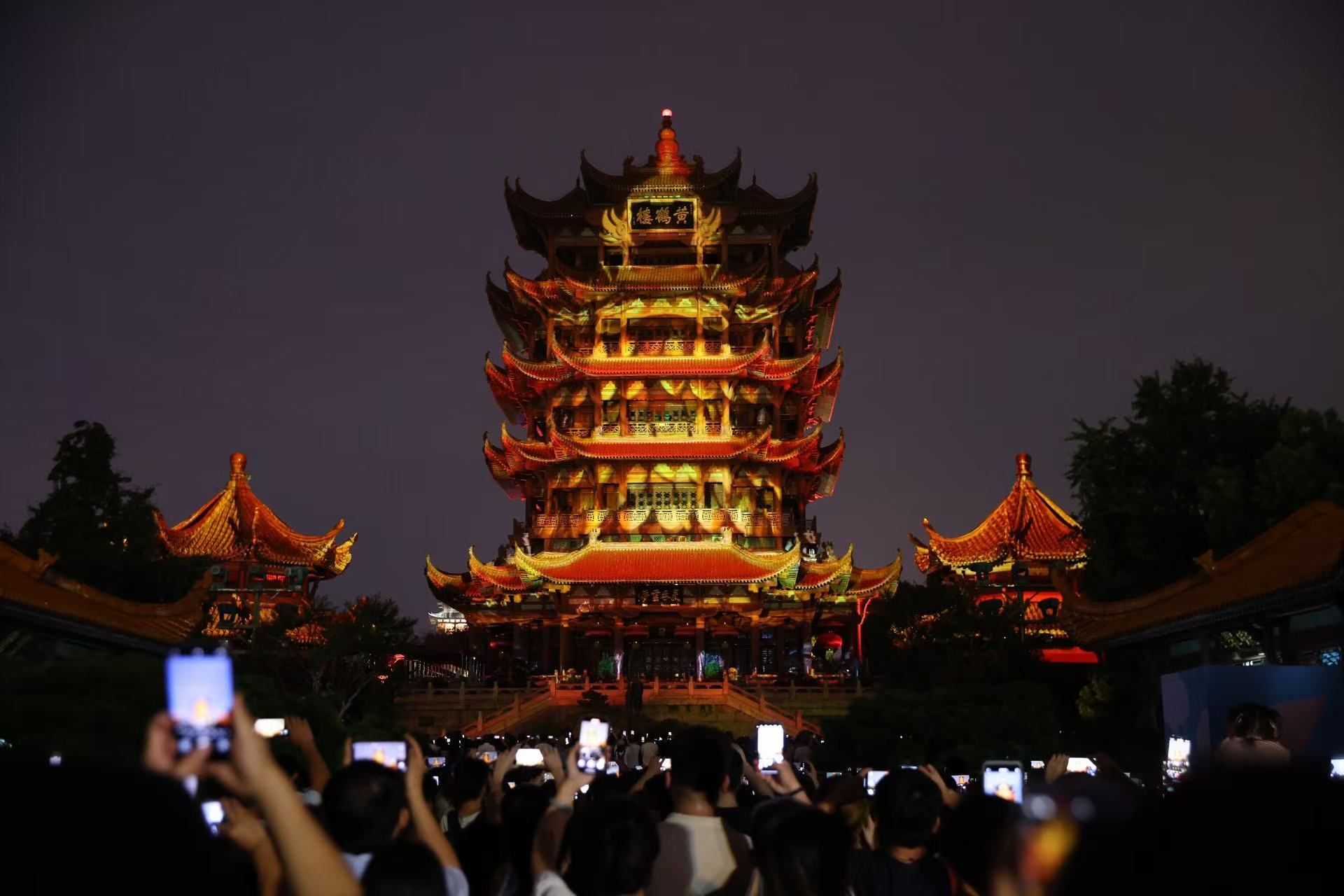 《夜上黄鹤楼》沉浸式演出吸引大量游客观赏、游玩,并上榜湖北十大夜游目的地榜单。以光影技术再现诗词意境,让游客与李白共望一江春水,千年名楼在智慧文旅的赋能下焕发出别样魅力。