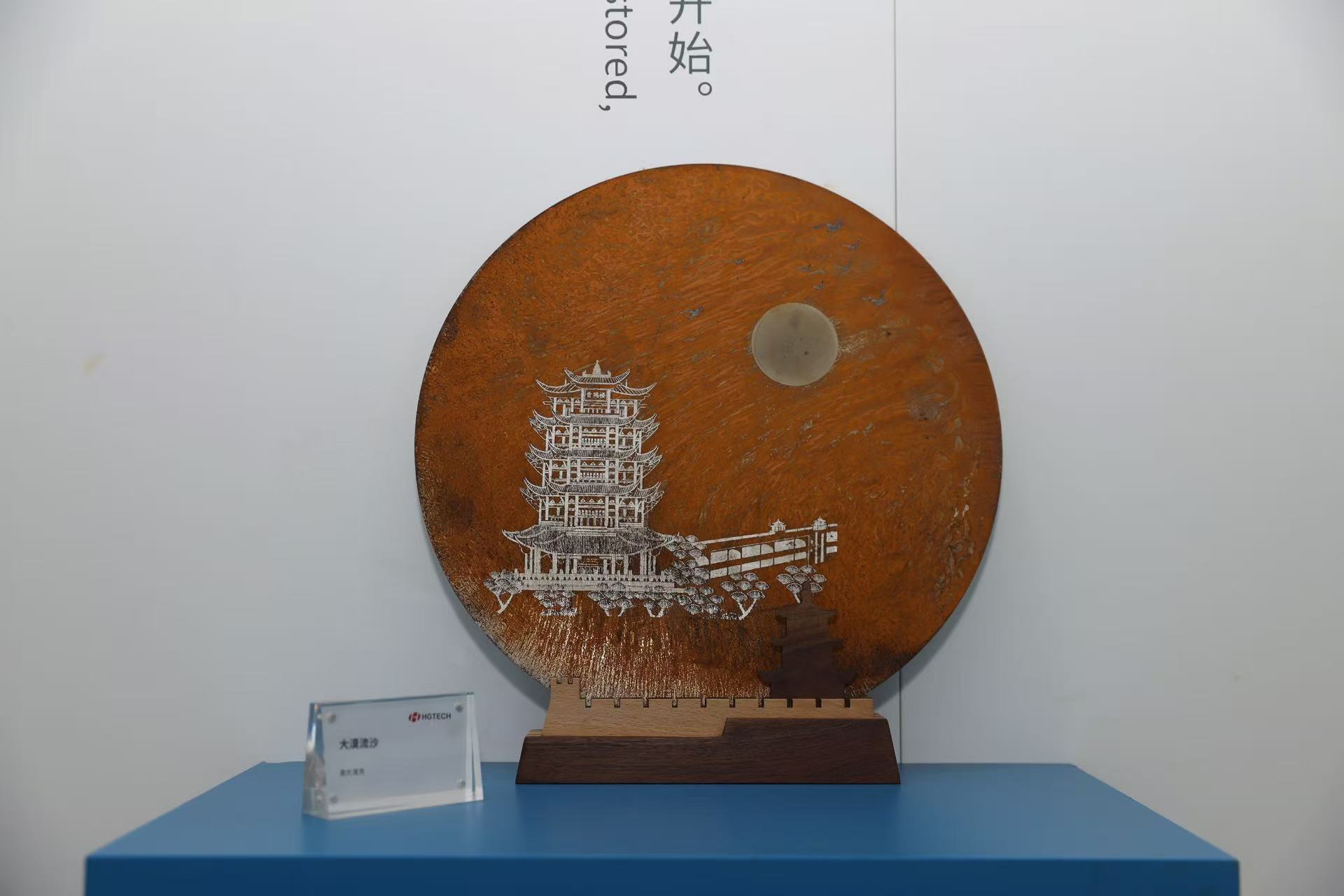 “光无界”展区里,一个个激光技术在新能源、半导体等领域的应用案例让人心头振奋。两尺宽的金属片上,也能切割出一座微型黄鹤楼。“视听长江”网络视听创作采风行一行看到了众多激光应用成果,小到微米级的艺术品,大到激光焊接白车身,每一件都彰显着“中国智造”的硬核实力。