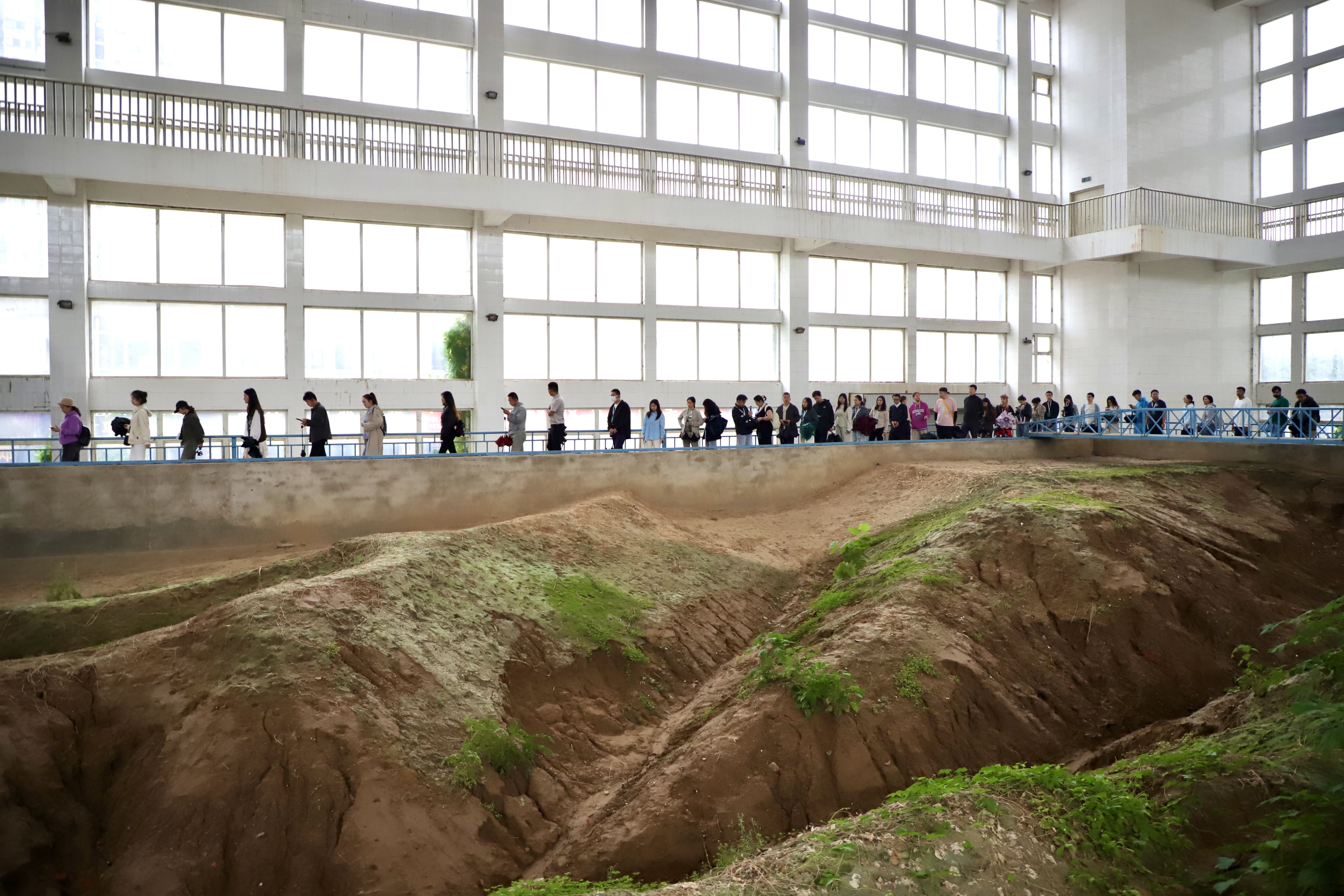在下游河道试验厅内,记者一行见到了一条微缩版的黄河。
