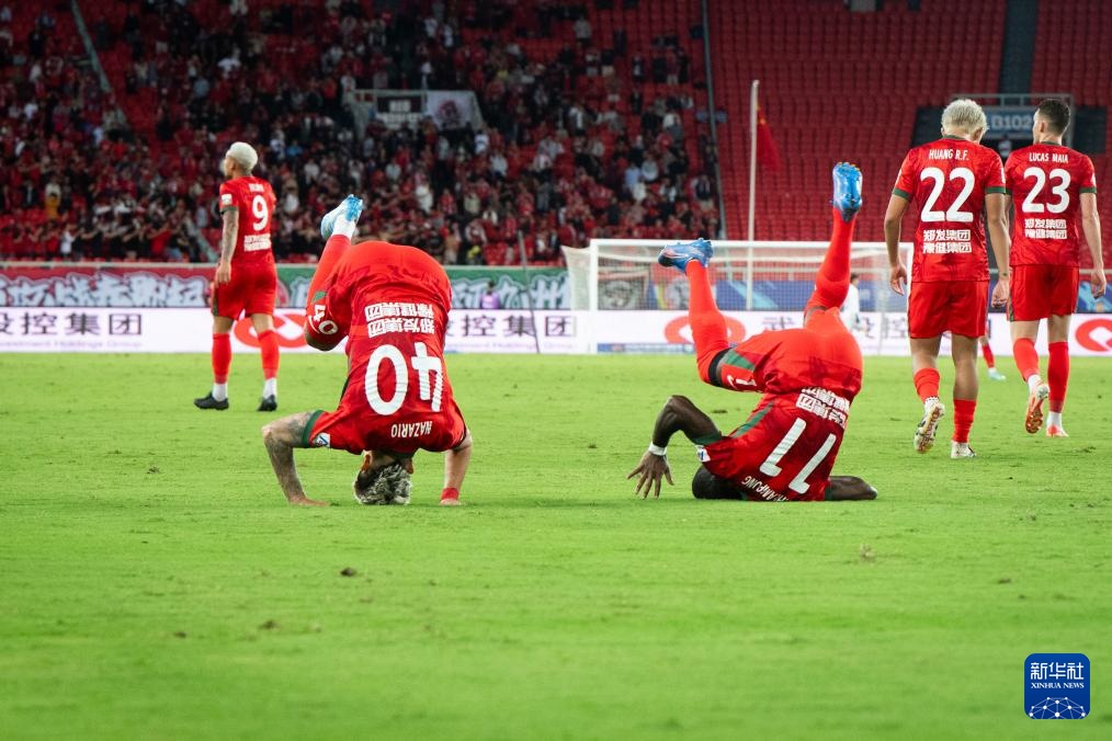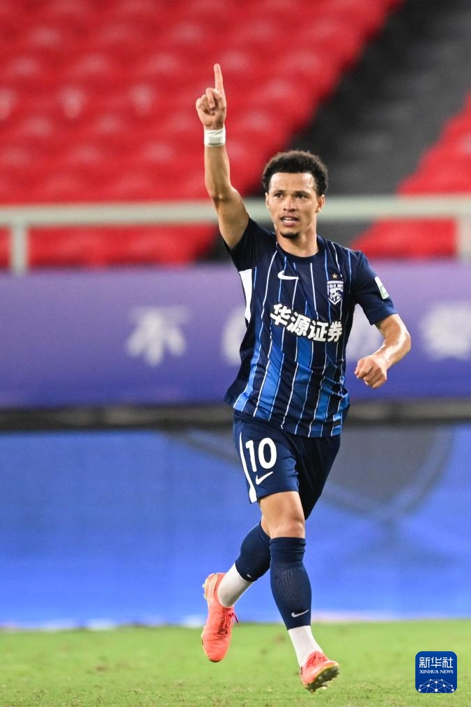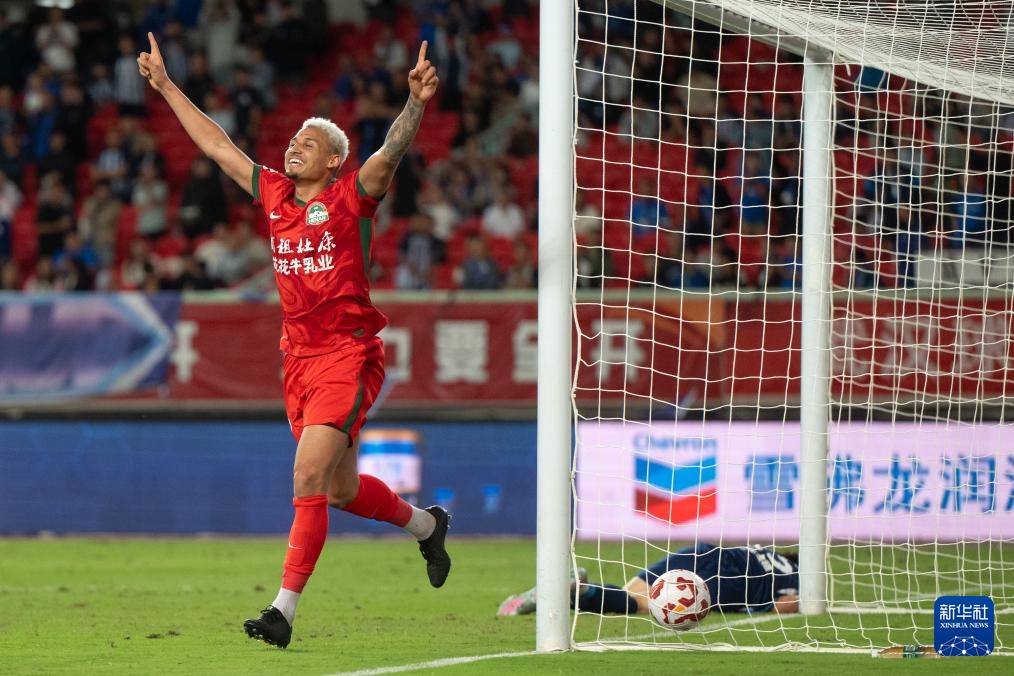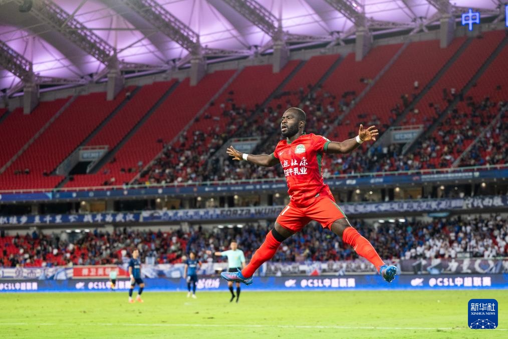 9月19日,武汉三镇队球员达兰在进球后庆祝。