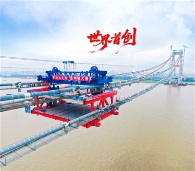 9月20日,湖北黄冈与鄂州之间的长江江面上,随着一节长28.4米、重830吨的钢梁由缆载吊机缓缓提升至设计位置,燕矶长江大桥主跨首节钢梁吊装完成。燕矶长江大桥是我国首座大跨度四主缆悬索桥,也是世界首座不同垂度四主缆悬索桥。其上层设计为高速公路,下层为城市快速路,是鄂东空铁、空陆联运立体交通运输体系的重要过江通道,预计今年底完成钢梁架设。