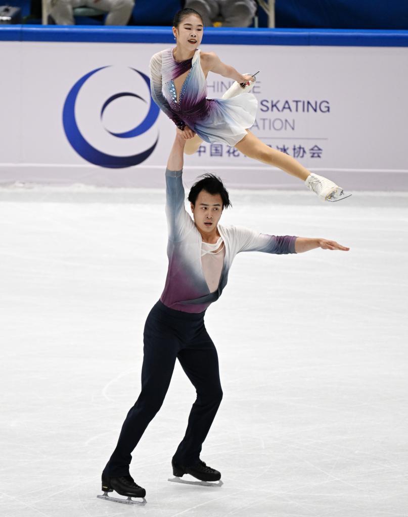 9月20日,张嘉轩(上)/黄一航在双人滑自由滑比赛中。新华社记者 张晨霖 摄