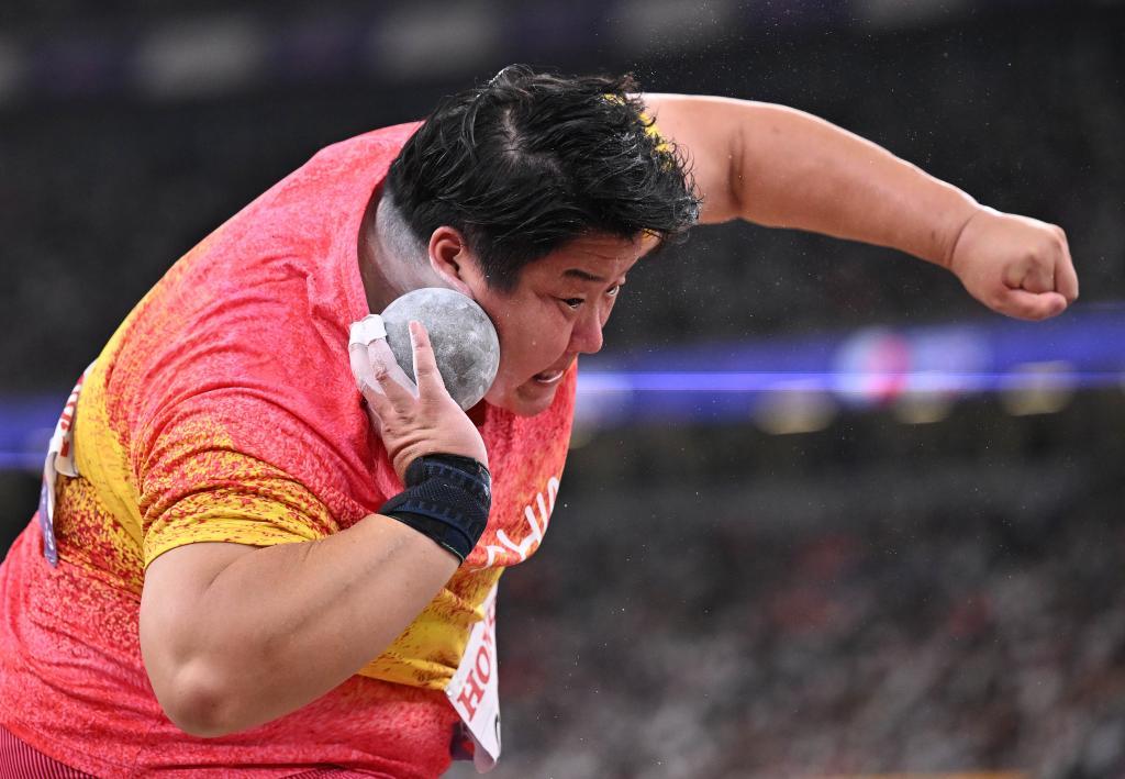 9月20日,中国选手巩立姣在铅球比赛中。最终,她位列第九名。新华社记者 宋彦桦 摄