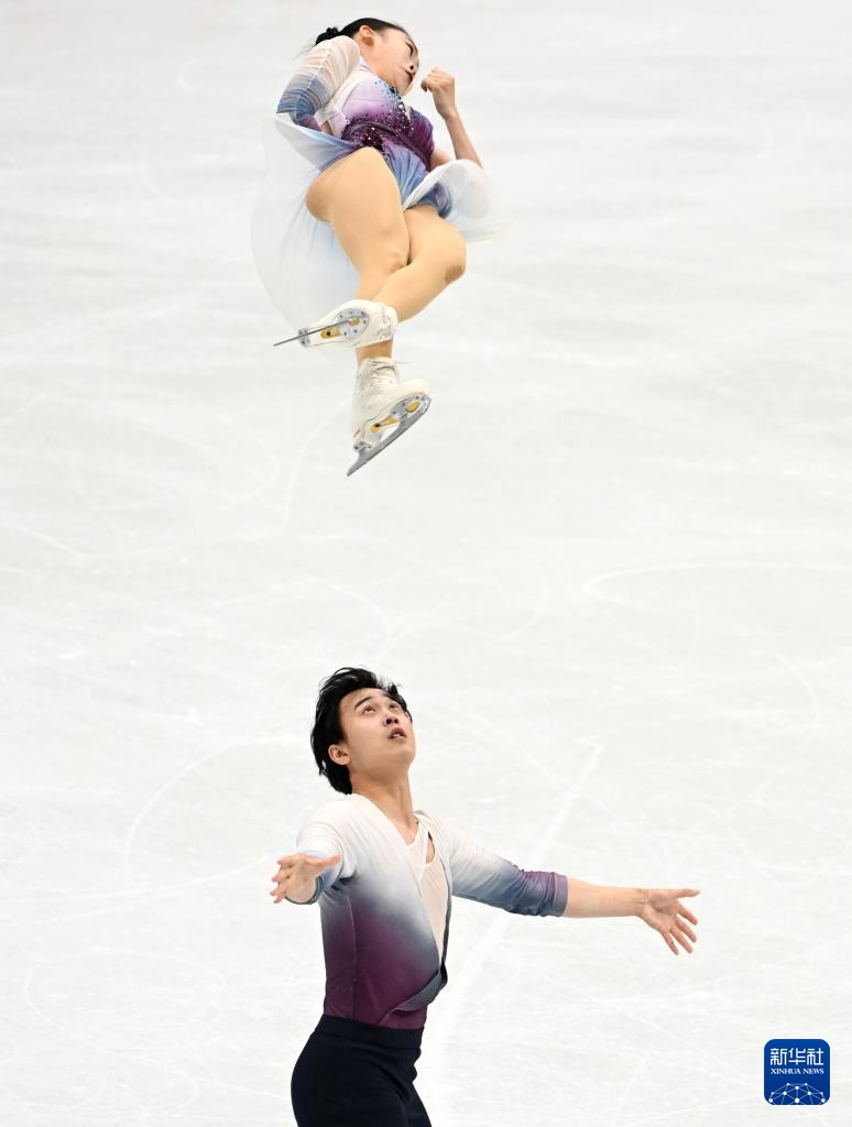 9月20日,张嘉轩(上)/黄一航在双人滑自由滑比赛中。