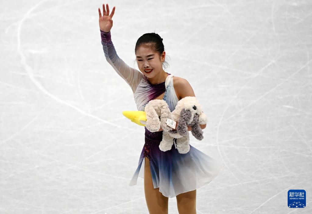9月20日,张嘉轩在双人滑自由滑比赛结束后向观众致谢。
