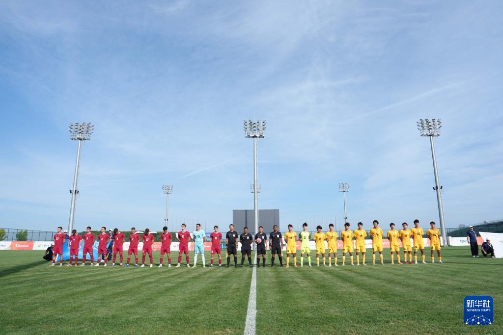 9月20日,北京航空航天大学男足主教练徐昆(右一)在比赛前。