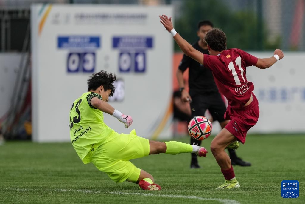 当日,2025年国际大体联足球世界杯男子A组小组赛在大连举行,西班牙格拉纳达大学男足3比1战胜北京航空航天大学男足。