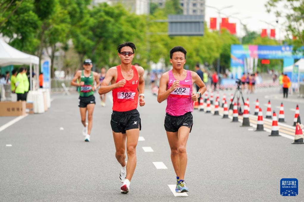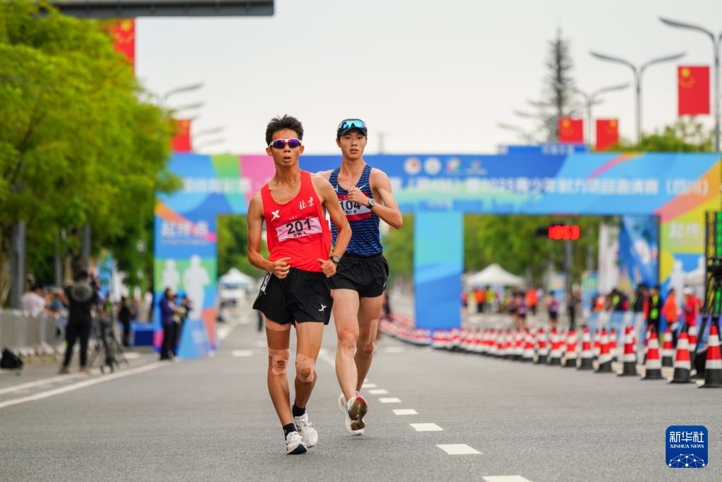 9月20日,北京选手曾鹏飞(左)在男子U18组10公里竞走比赛中。最终,他获得该项目冠军。