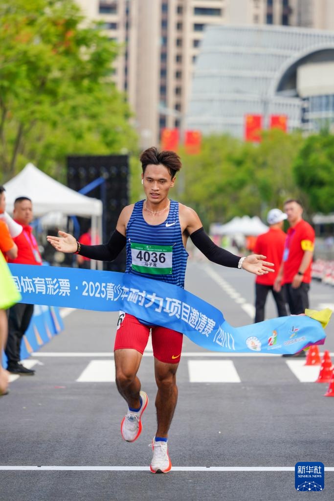 9月20日,参赛选手马子龙在男子U20组10公里耐力赛中冲过终点。