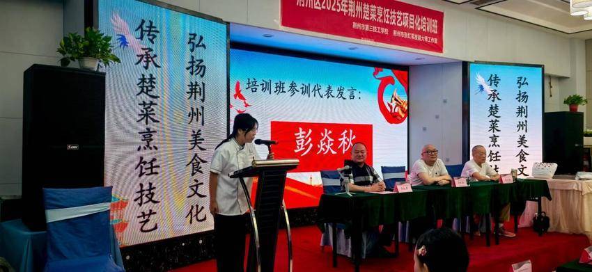 湖北日报客户端讯(通讯员 周涛)9月15日,荆州区首期“荆州楚菜烹饪技艺”中式烹调师项目化培训班,在荆州古城阳光酒店开班。此次培训班由荆州市第三技工学校与荆州市张红军中式烹饪技能大师工作室联合开办,参加培训学员有城镇登记失业人员、农村转移就业劳动者、毕业年度高校毕业生等重点就业服务群体近50人,一场品荆州美食、赏荆州美景、讲荆州故事,聚焦楚菜文化传承与劳动者烹饪技能提升的培训盛宴就此拉开帷幕。