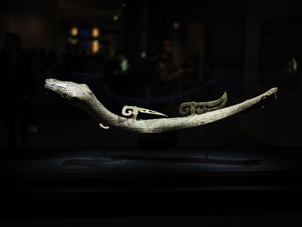 三星堆博物馆展出的商代青铜蛇展品(2025年1月23日摄)。新华社记者 薛晨 摄