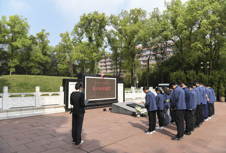 中铁建工集团重庆东站项目部职工在重庆歌乐山烈士陵园缅怀革命先烈(2024年3月28日摄)。新华社记者 王全超 摄