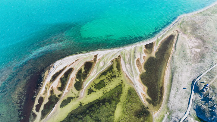 这是2025年7月25日在青海省果洛藏族自治州玛多县扎陵湖畔拍摄的“尕日塘秦刻石”所在地(无人机照片)。新华社记者 杜笑微 摄