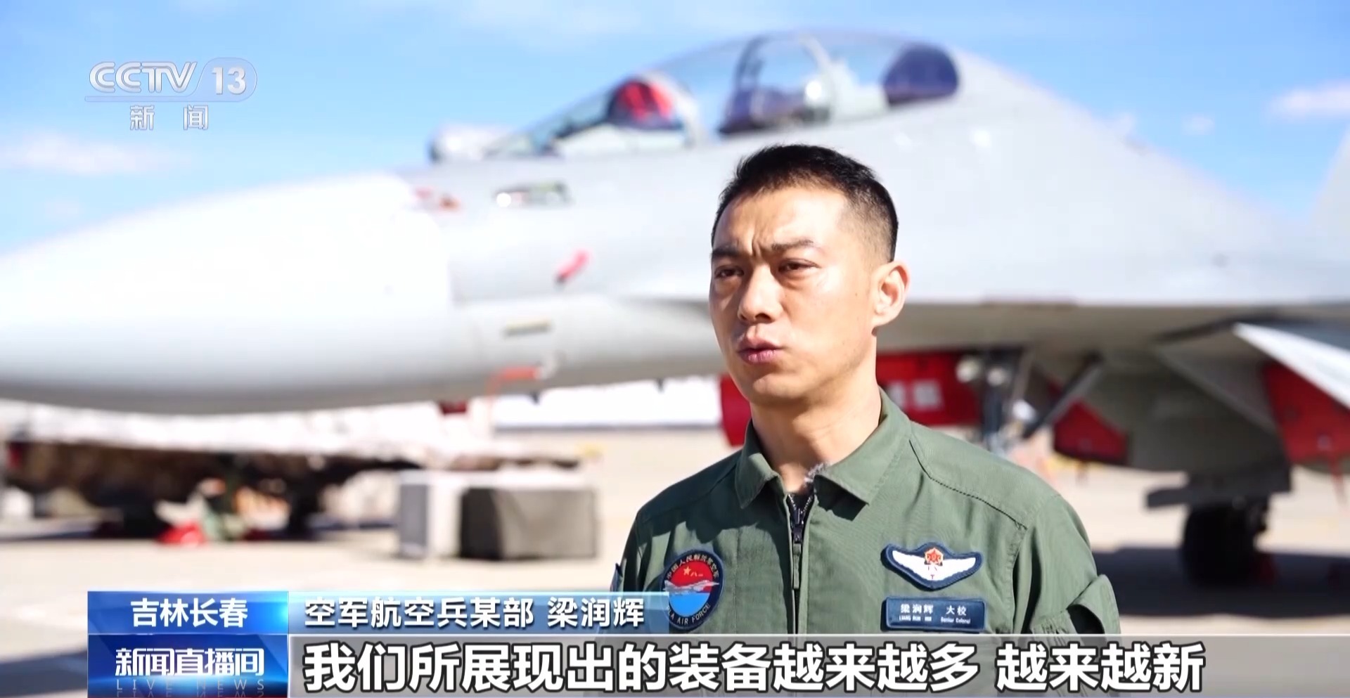 空军航空兵某部 梁润辉:我们所展现出的装备越来越多、越来越新,体现了我们空军蓬勃发展的趋势。装备的发展也体现了空军战斗力的提升。