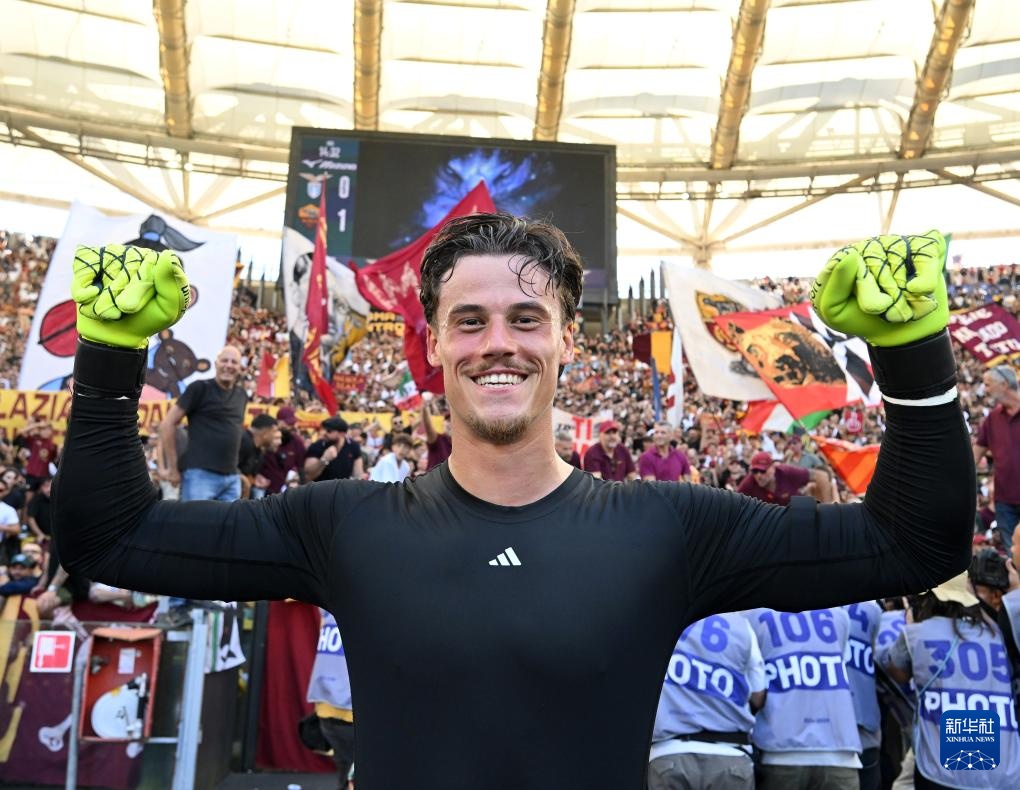 9月21日,罗马队守门员斯维拉尔在赛后庆祝。