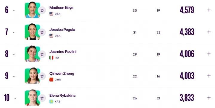 WTA最新排名↓