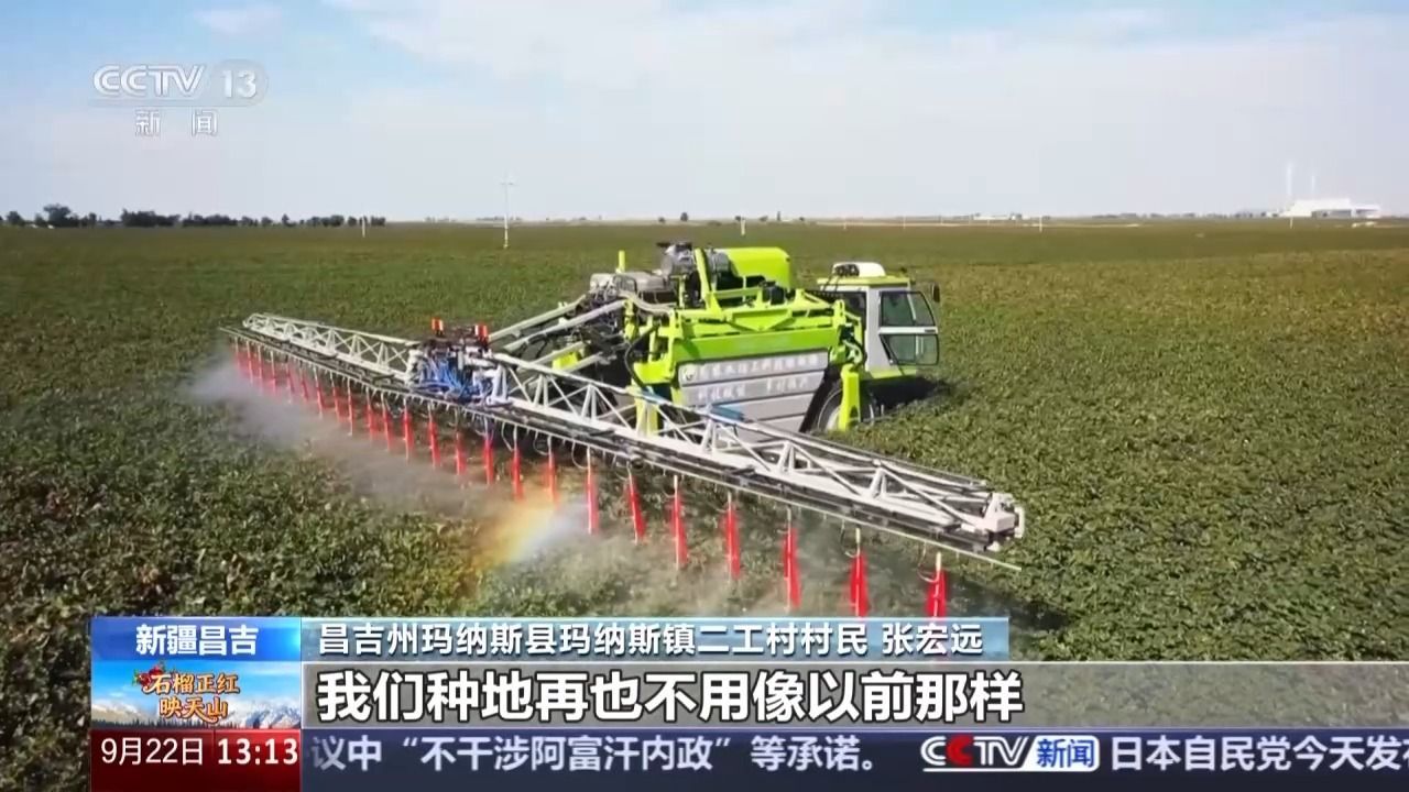 昌吉州玛纳斯县玛纳斯镇二工村村民 张宏远:从坎土曼到各种现代化农机,新疆农业的机械化水平越来越高,技术设备也是越来越先进,种地再也不用像以前那样面朝黄土背朝天。我们是新疆农业发展的见证者,也是受益者。