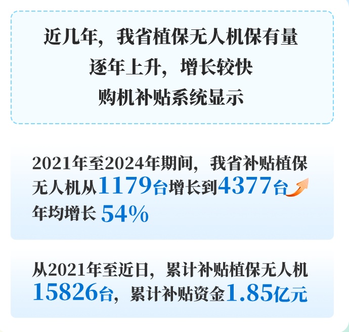 政策驱动强。今年中央将植保无人机纳入报废更新补贴范围,农户报废旧机后更换新机意愿强烈,加速了我省植保无人机迭代升级。下一步,省农业发展中心将组织做好植保无人机操作技能培训,打造植保无人机典型应用场景,进一步推动我省植保无人机蓬勃发展。