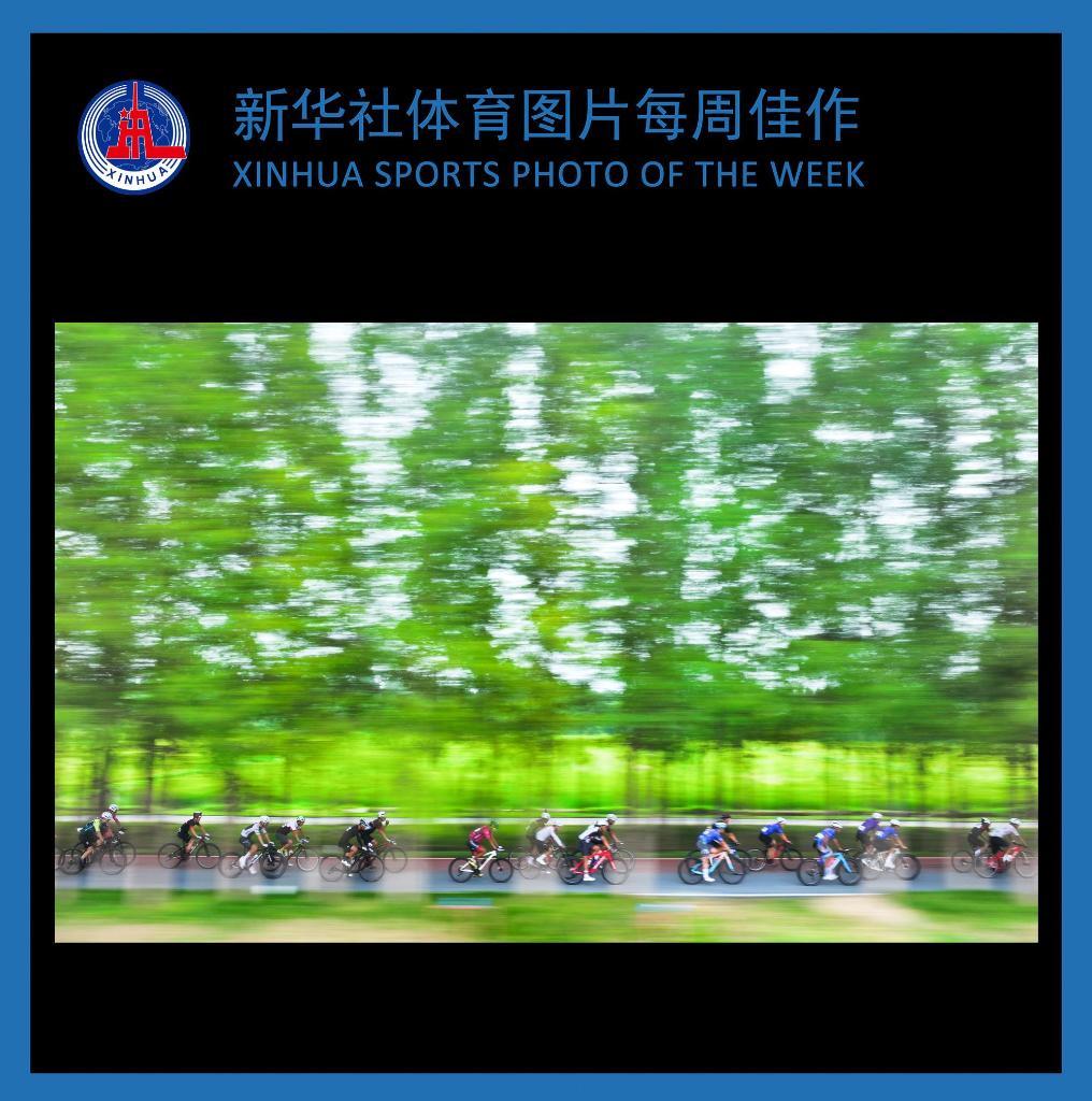 9月14日,参赛选手在比赛中骑行(无人机照片)。