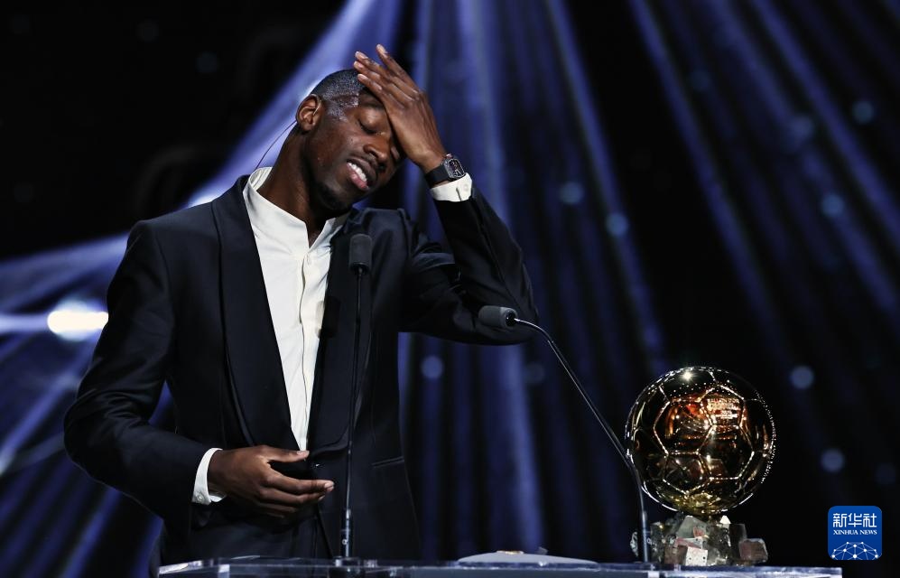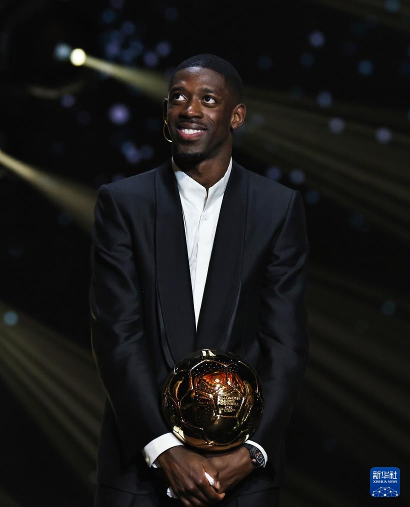 9月22日,巴黎圣日耳曼队法国球员登贝莱在颁奖仪式上。他获颁男足金球奖。