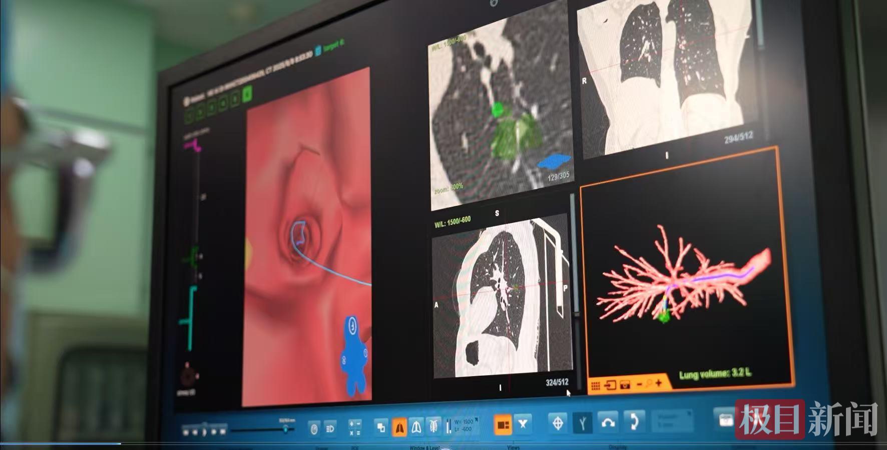 呼吸与危重症医学科主任倪吉祥介绍,术前,团队基于患者的肺部CT影像,运用先进的三维重建技术,成功构建其完整的气管支气管树虚拟模型,精准规划了支气管镜入路路径,并生成三维动画,为手术做好了充分准备。术中,增强显示光学全肺诊疗导航LungPro系统就像为医生安装了一套“肺部GPS导航系统”,通过术前精准规划和术中实时导航,可以直达传统支气管镜难以触及的肺部边缘病灶,实现精准治疗。与传统手术相比,该项技术通过人体自然腔道的方式进行治疗,不出血,气胸发生率低,可最大程度保留肺组织、减少肺功能损伤,为多原发性肺癌、术后复发,或者心肺功能不耐受外科手术治疗的肺癌患者提供了新的治疗方式。