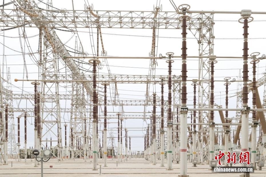 哈密南—郑州±800千伏特高压直流输电工程(简称“哈郑直流”)是中国首个“双八百”特高压直流输电工程,也是中国实施疆电外送的重要枢纽工程。图为新疆哈密,天山换流站交流区域。中新社记者 王紫儒 摄