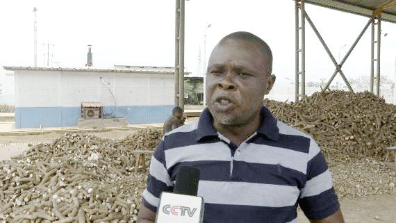 木薯粉加工厂厂长曹仁忠:我们使用中国先进的种植技术和理念,在7000多公顷的土地上种植了不同品种的木薯,这样确保每个时间段都有木薯成熟,从而满足当地民众对粮食的需求。