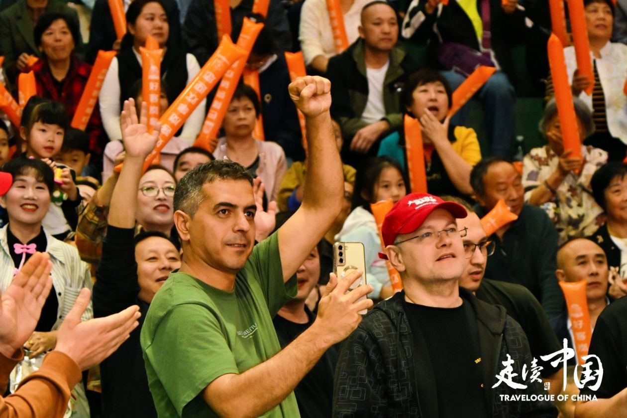 9月19日,2025“走读中国”国际媒体交流项目来自俄罗斯、哈萨克斯坦、白俄罗斯、乌兹别克斯坦、格鲁吉亚等11个国家的12位外媒记者与国内主流媒体记者组成联合采访团,走进赛场,与观众互动,甚至上场游戏切磋,亲身感受“村BA”的热烈氛围。