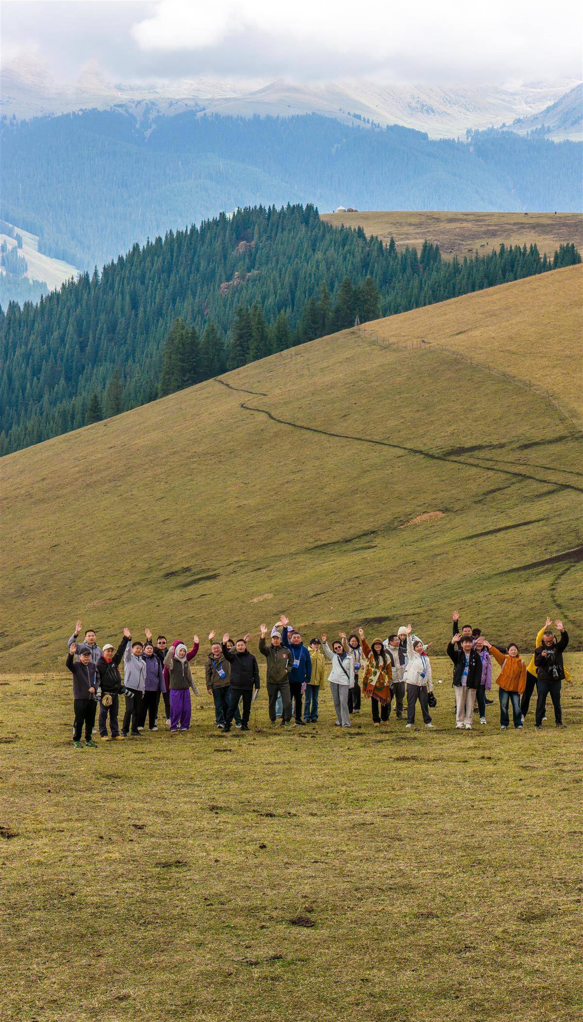 来自全国省级媒体的“走进美丽新疆”采访团在喀拉峻草原