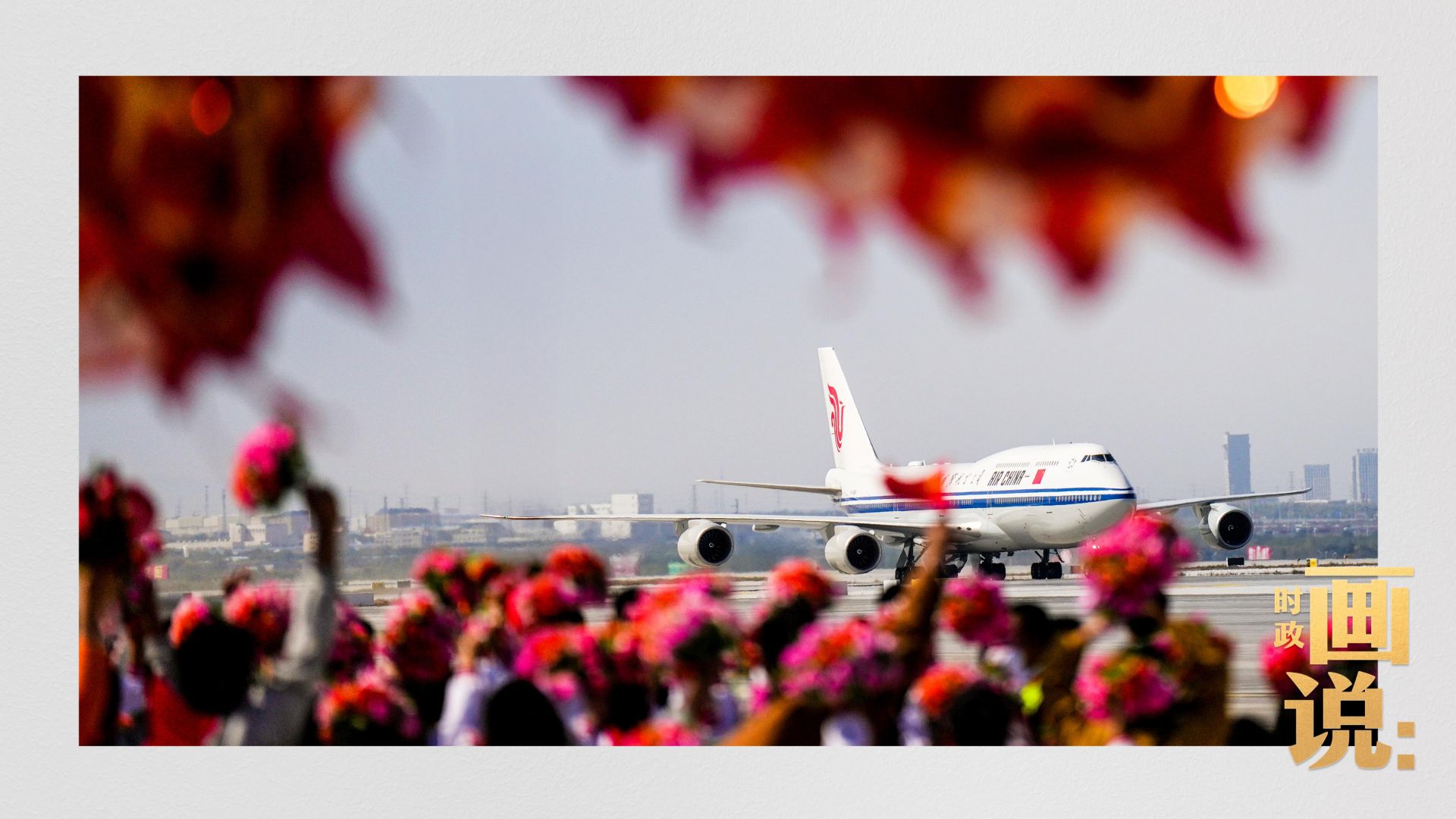 中共中央总书记、国家主席、中央军委主席习近平率中央代表团23日下午乘专机抵达乌鲁木齐,出席新疆维吾尔自治区成立70周年庆祝活动。习近平在机场受到新疆各族群众的热烈欢迎。