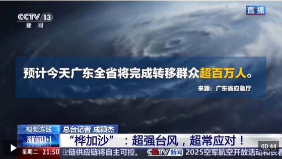 赖先龙:目前广东省21个地市,121个县区全部启动了防汛防风应急响应,以最高标准和最严的措施来防范台风“桦加沙”的影响。同时,我们还联合省级的有关单位向公众发布了预警信息。我们协同香港、澳门有关部门共同加强台风监测预报信息共享,还有抢险救援协作等工作。
