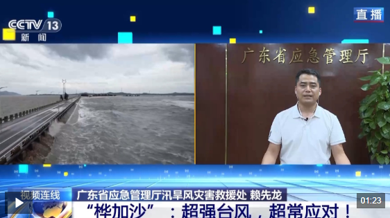 赖先龙:“桦加沙”属于超强台风,广东省于23日上午发布了全省的紧急动员令,号召全省上下动用一切资源、一切力量投入抢险救援的行动中。另外,广东省防总于23日10时也启动了防风Ⅰ级应急响应,这也是我们防风应急响应的最高级别,也能看出这次台风防御形势的严峻性。