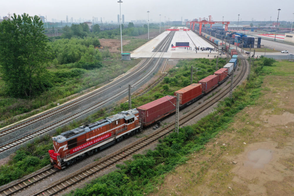 开往哈萨克斯坦阿拉木图的班列从武汉吴家山站驶出。新华社发(彭琦摄)